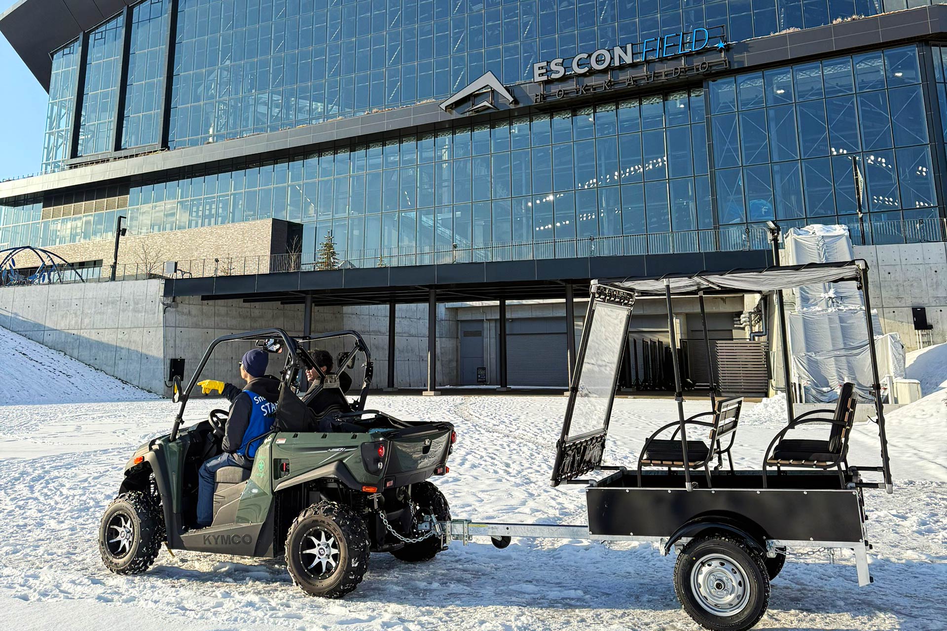 今年初登場の周遊Ride。雪上を自由に走れる4WDバギーに牽引された専用車両に乗って、雪景色を楽しみ … 今年登場の周遊Rideでゆるりと雪上散歩